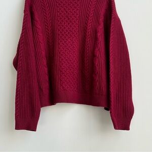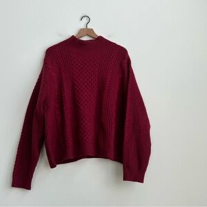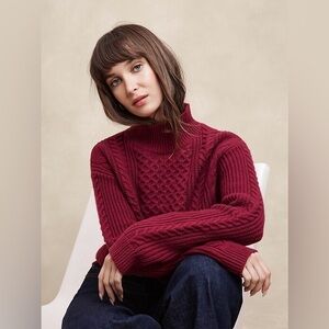 New Banana Republic Burgundy Turtleneck Cable Knit Sweater Wool XXL Fisherman