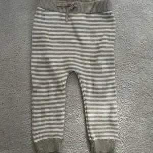 Adorable knit sweater and pants set for babies. Features a cozy sweater with a pocket and matching striped pants. Perfect for keeping your little one warm and stylish.
