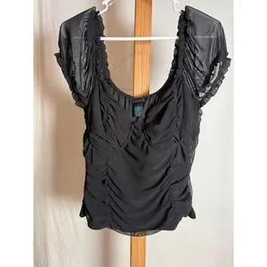 Rue21 Rue+ Black Sleeveless Mesh Top Plus Size 1X Gathered Neckline Stretch