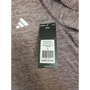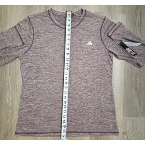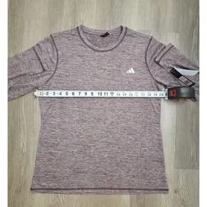Adidas women’s long sleeve Tech Tee in Heather Shadow Fig color, size Large. Made from lightweight and breathable polyester knit, ideal for workouts, training, layering, or everyday casual wear. The classic athletic design features long sleeves and the Adidas logo on the chest for a clean sporty look.