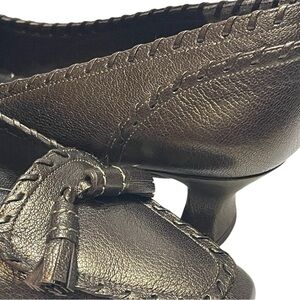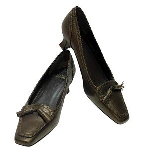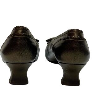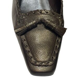 Excellent preowned condition! These are a classic! Sleek design with a comfortable kitten heel. Stunning pewter color. Will pair great with your favorite wide leg pants or skirts!
