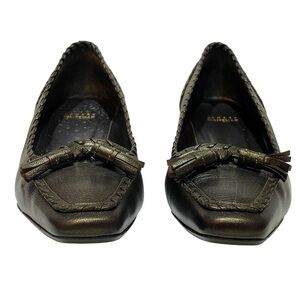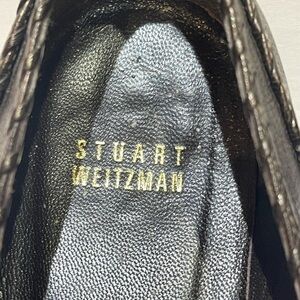 STUART WEITZMAN PEWTER KITTEN HEEL SQUARE TOE LOAFERS SZ 10 M EUC
