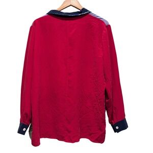 Vintage The Quacker Factory Red Sequin Lighthouse 100% Silk Button Up Shirt Large