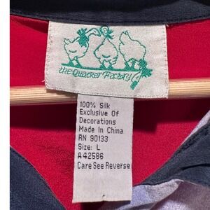 Vintage Quacker Factory Red Sequin Lighthouse 100% Silk Button Up Shirt Large