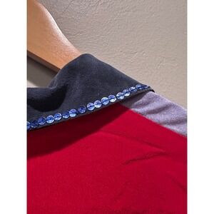 Beautiful red collared shirt with colorful sequin nautical design on the front