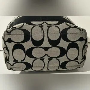 Coach Signature Black Gray Canvas Leather structured logo Shoulder Bag