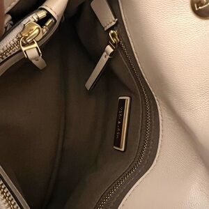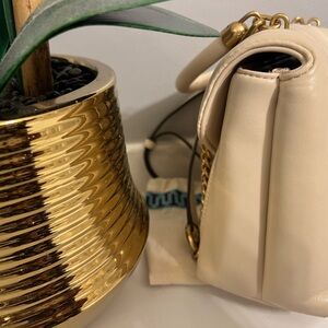 Tory Burch Cream Quilted Top Handle Satchel with Gold Chain