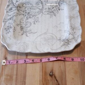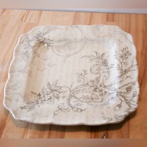 222 Fifth “Love Poem” Fine China Square Plate – 10” Gray Floral Scroll Design