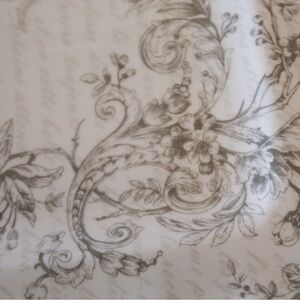 • Color: Ivory with gray floral scroll and French script design