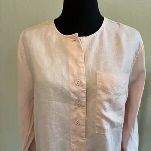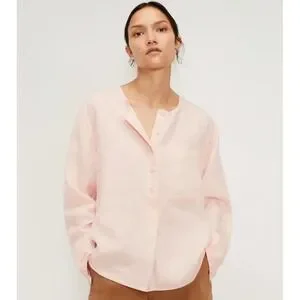 Everlane Women's Linen Popover Shirt Petal Pink Blouse Long Sleeve Size 2