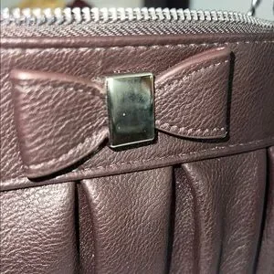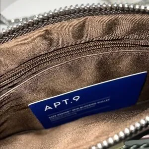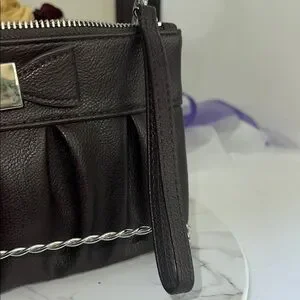 This elegant brown leather clutch by Apt. 9 features a charming bow detail, wristlet strap, and convenient zip closure. Perfect for adding a touch of sophistication to any outfit. The clutch also includes a wristlet strap for easy carrying.
