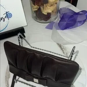 Apt. 9 Brown Leather Clutch with Bow Detail and Wristlet Strap