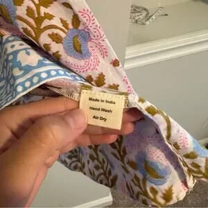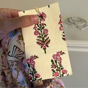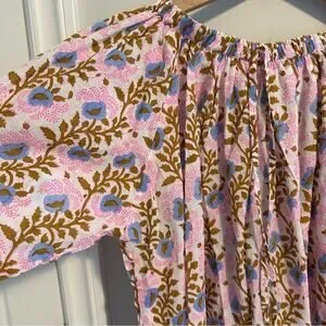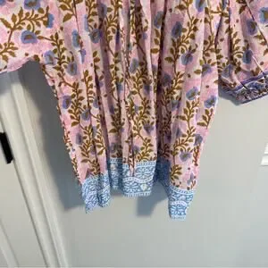I adore this super pretty pink blue floral printed block printed cotton new with tags designer SZ Blockprints blouse/top