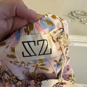 NWT Tuckernuck SZ Blockprints Pink Blue Floral Cotton Oversized Blouse Small
