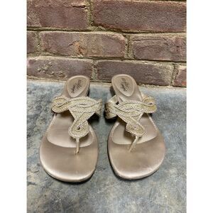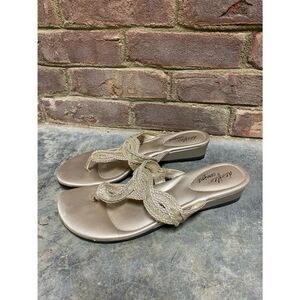 DexFlex Comfort Gold Thong Wedge Sandal Size 9