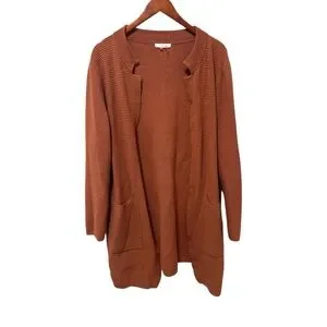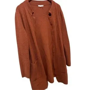 Anthropologie Sioni Wool Blend Ribbed Cardigan Burnt Orange
