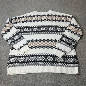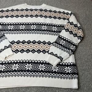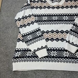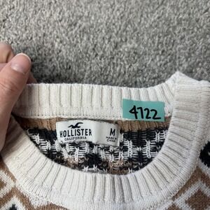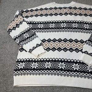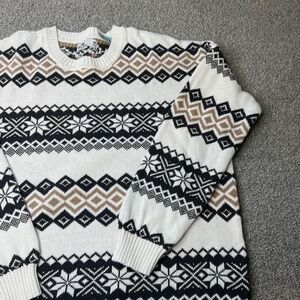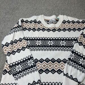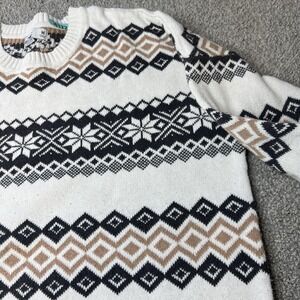 Hollister Sweater Mens Medium White Fair Isle Snowflake Knit Pullover winter