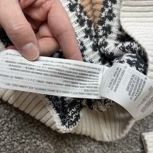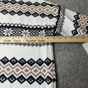Color: White base with black and tan Fair Isle snowflake pattern throughout