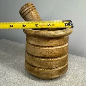 A beautifully crafted wood mortar and pestle set is perfect for grinding herbs, spices, teas, and small kitchen ingredients. Its warm, natural finish adds a cozy, earthy touch to any countertop while offering practical everyday function. Nonslip base will not damage counters.