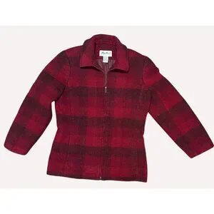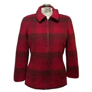 Eddie Bauer Womens Red & Black Plaid Fitted Wool Zipper jacket Small Cabincore