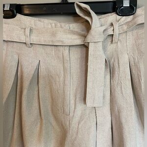 Zara Linen Belted Shorts with Pleated Front Size M
