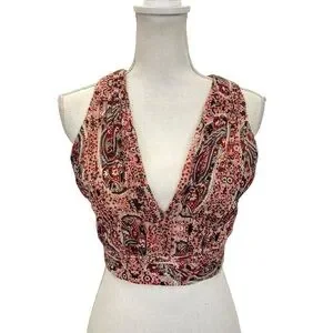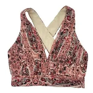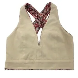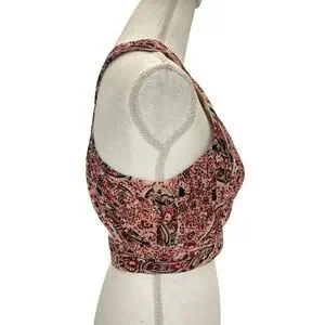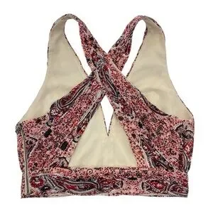 Note: fabric content and size labels have been removed; top is measuring approx Size 2 but please refer to measurements below; fabric is poly elastane blend according to website