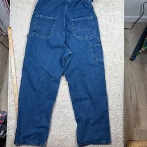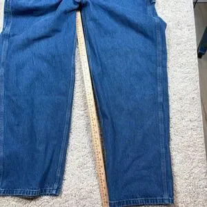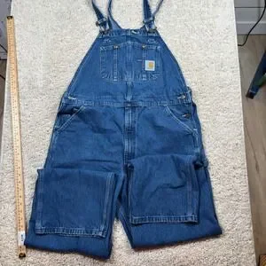 Classic Carhartt denim bib overalls offer the ultimate blend of rugged durability and timeless workwear style. Crafted from heavy-duty 100% cotton denim in a deep indigo wash, these overalls feature the iconic triple-stitched main seams and a multi-compartment bib pocket for functional storage. The adjustable suspenders and side button closures ensure a comfortable, personalized fit that moves with you throughout the day. This pair is in excellent pre-owned condition, showing only light signs of natural wear that add to its authentic character. Perfect for outdoor labor, weekend DIY projects, or achieving a trendy streetwear aesthetic.