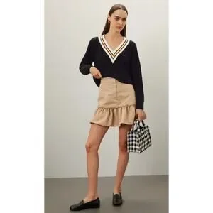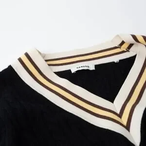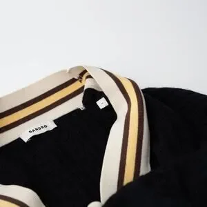 Sandro Alizia Navy V-Neck Black Knit Wool Sweater