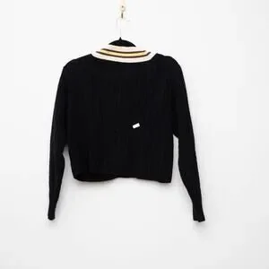 Black knit (94% wool, 6% cashmere; Collar: 88% wool, 6% polyamide, 6% cashmere). Sweater. Long sleeves. V-neck. Pull on.