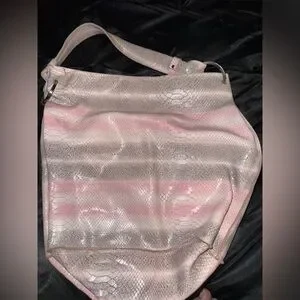 This is a very thick leather snakeskin print stylish women's bag features a chic pink and cream design, perfect for any occasion. Its elegant look adds a touch of sophistication to your outfit.