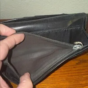 Call outs: The hardware does show scratching and tarnishing and loss of color. The corners on the top and the bottom do show rubbing and dryness as well as some tears in the leather. There is some rubbing on the interior leather as well.