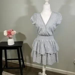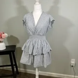American Eagle Two Ruffle Dress Blue Stripe Size Small Deep V