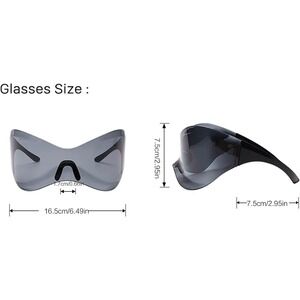 Keywords: shield sunglasses, futuristic sunglasses, oversized sunglasses, wrap sunglasses, visor sunglasses, Y2K sunglasses, unisex sunglasses, fashion sunglasses, statement eyewear, avant garde sunglasses, cyberpunk sunglasses, rave sunglasses