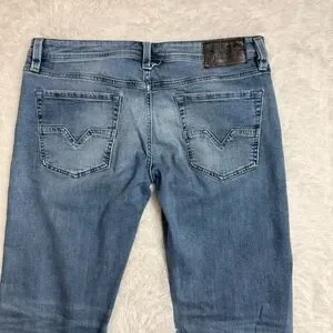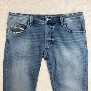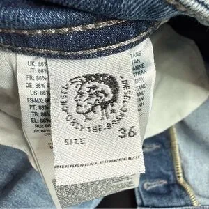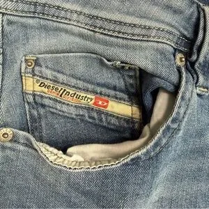 Premium Diesel denim with signature hardware, button fly, and iconic Diesel Industry pocket branding.