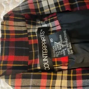Stylish plaid blazer with bold red and black pattern. Perfect for a sophisticated look. Look at all photos for condition of the item :)