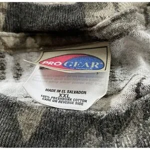 The product is a lot of 3 hunting camo T-shirts in size 2XL with long sleeves, designed by Pro Gear Shadow Branch Outdoors. Made of cotton, these camouflage shirts are suitable for men and offer a multi-color design, ideal for outdoor activities and sporting goods. The regular fit and long sleeves provide comfort and protection during hunting trips or outdoor adventures.