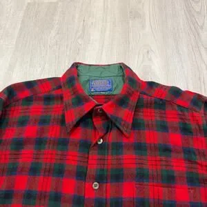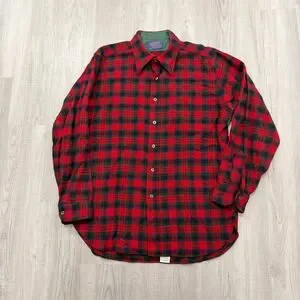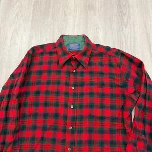Vintage Pendleton Wool Flannel Shirt Men's Large Red Green Tartan Plaid 90s USA