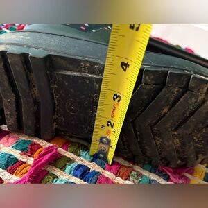 These are the Cat & Jack Robbie Winter Boots, a popular water-resistant style featuring a black rubber base and a neoprene upper with a colorful polka dot pattern. Big girls size 4. Good loved condition, smoke free home.