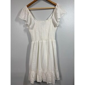 NWT Angie Mini Dress Women Large White Eyelet Flutter Sleeve Sun Dress