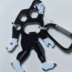 This versatile bid foot gorilla-shaped multi-tool keychain is perfect for on-the-go convenience. Featuring a sleek black design, it's a must-have accessory for any toolkit.