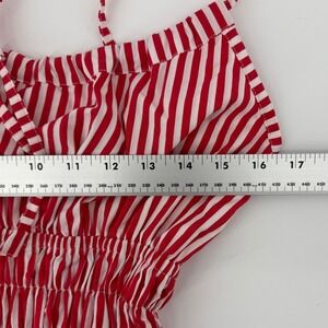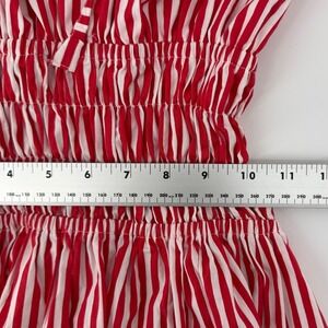 Lusana Rosa Poplin Mini Dress Red White Striped Smocked Womens Size 4