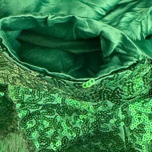 Eye-catching emerald green sequin pants. Full sequin coverage with shimmering finish. Small pocket built into front of waistband. Stretch fabric for a comfortable fit. Perfect for parties and festive events.