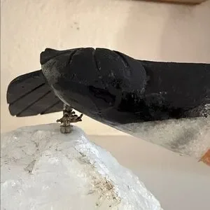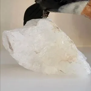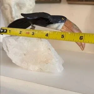 The toucan is removable from the quartz base, which is typical of many vintage gemstone bird carvings that were assembled using a small metal pin support.