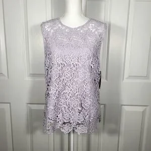 NWT Nanette Lapore Lace Sleeveless Top in Lavender Purple Zipper in Back