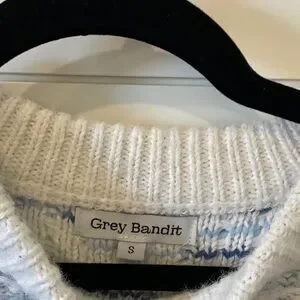 Grey Bandit Beauutiful Women's White and Blue Size Small Oversized Sweater