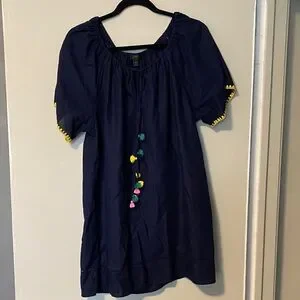 Navy dress with vibrant tassel accents. Ideal for casual outings.