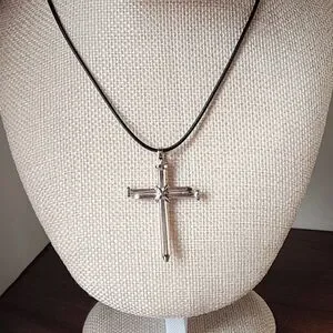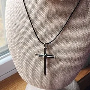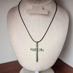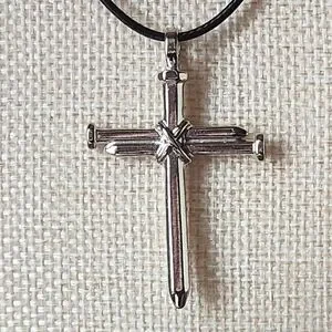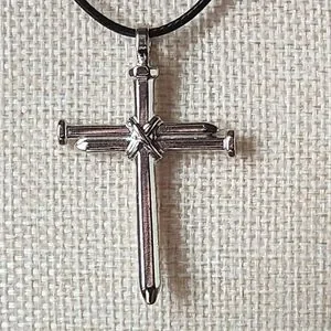 Elegant silver cross of nails pendant on a black cord. Perfect for any occasion, especially easter, resurrection day, or Passover. Unisex, for both men and women.