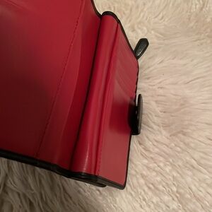Authentic Prada Milano black leather wallet with gold logo and beautiful red interior. Lightly used and in excellent condition with minimal wear. Clean interior, no tears or damage. Classic, timeless design with multiple card slots and zip compartment. Includes Prada dust bag for storage.