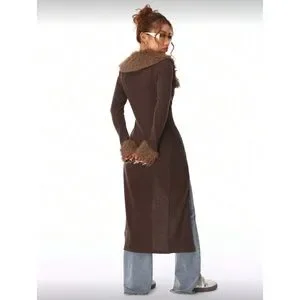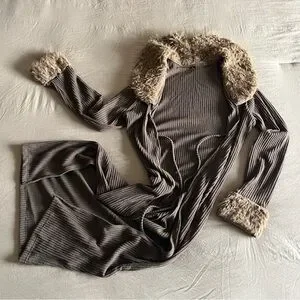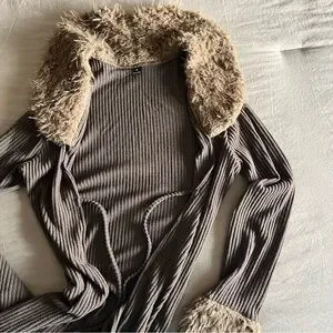 New without tags, never worn! Stylish brown long cardigan with faux fur trim. Perfect for layering. Fits closer to a small imo.