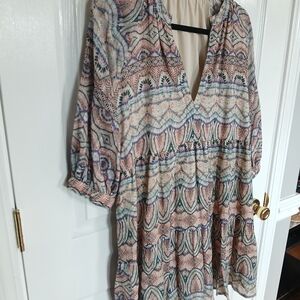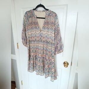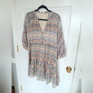 Amanda Uprichard Diego Peasant Balloon Sleeve Mini Dress with Multicolor Trim L